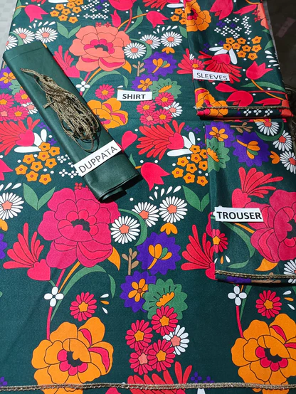 1 printed piece for shirt (front, back, sleeves, and trouser) 5 yards,